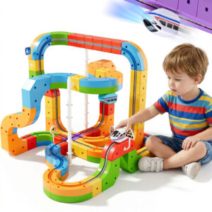 - ENDLESS 3D TRACK POSSIBILITIES: Featuring a user-friendly, snap-fit modular design, kids can easily connect the colorful cubes to build their own flexible race tracks. Whether it’s towering vertical climbs, twisting loops, or intricate bridges, this DIY railroad block toy empowers children to construct unique layouts every time they play