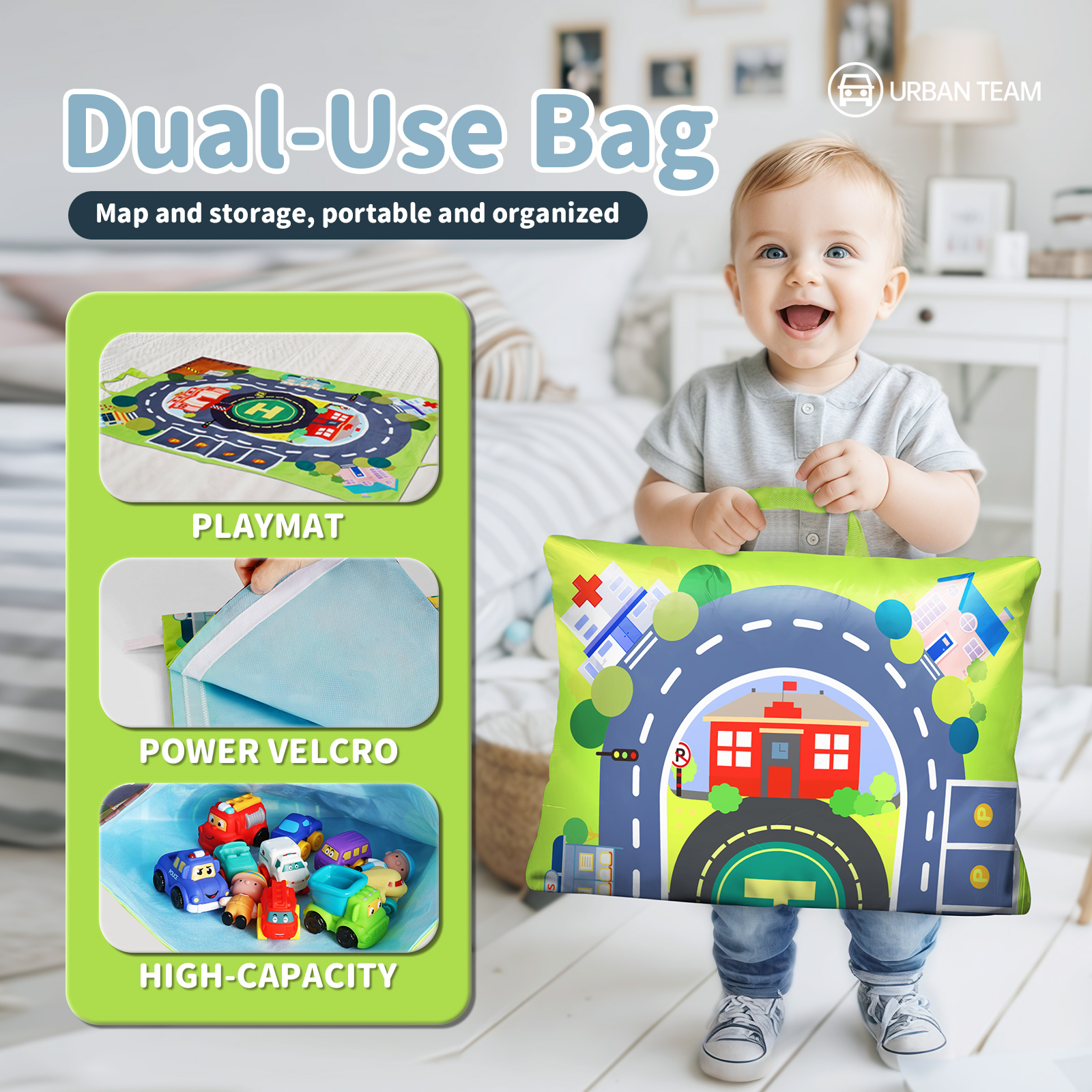 - Easy Pack & Go:City adventure map transforms into a bag to hold the car toys