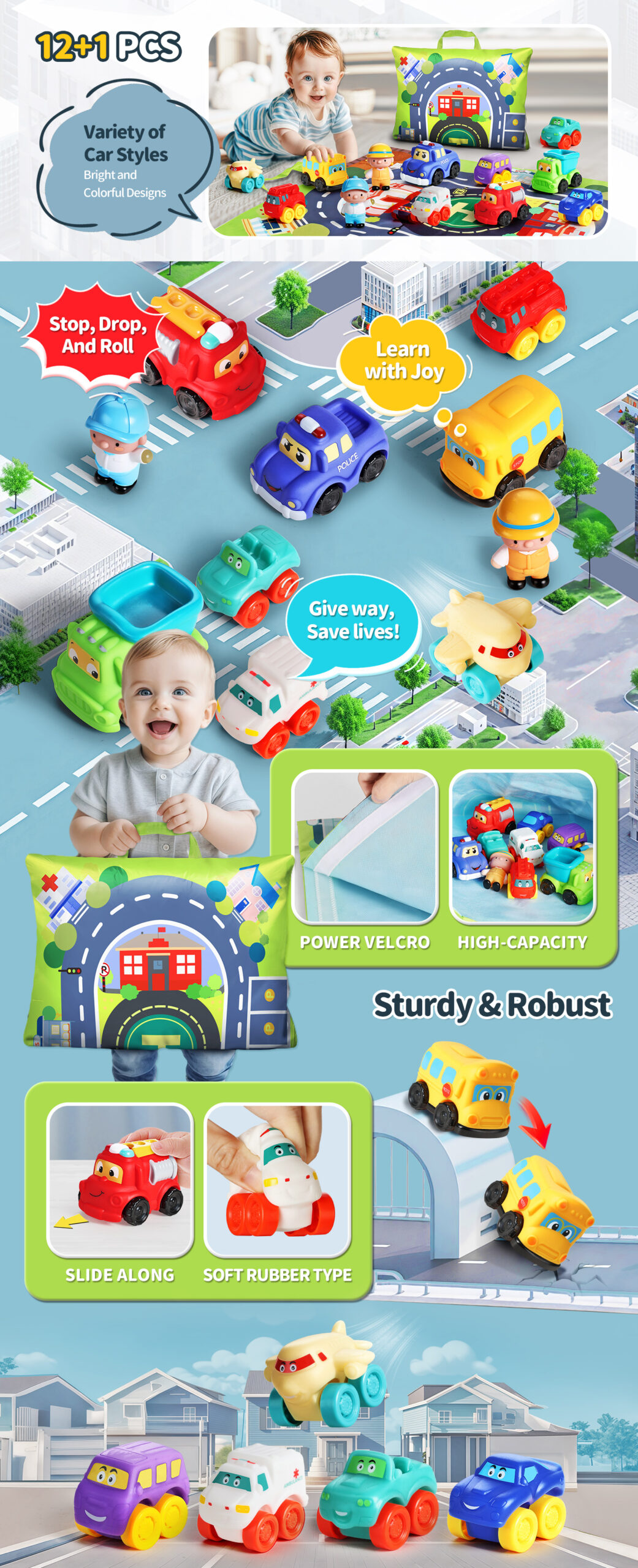 - Play & Learn:Essential city cars help babies learn about important jobs and services