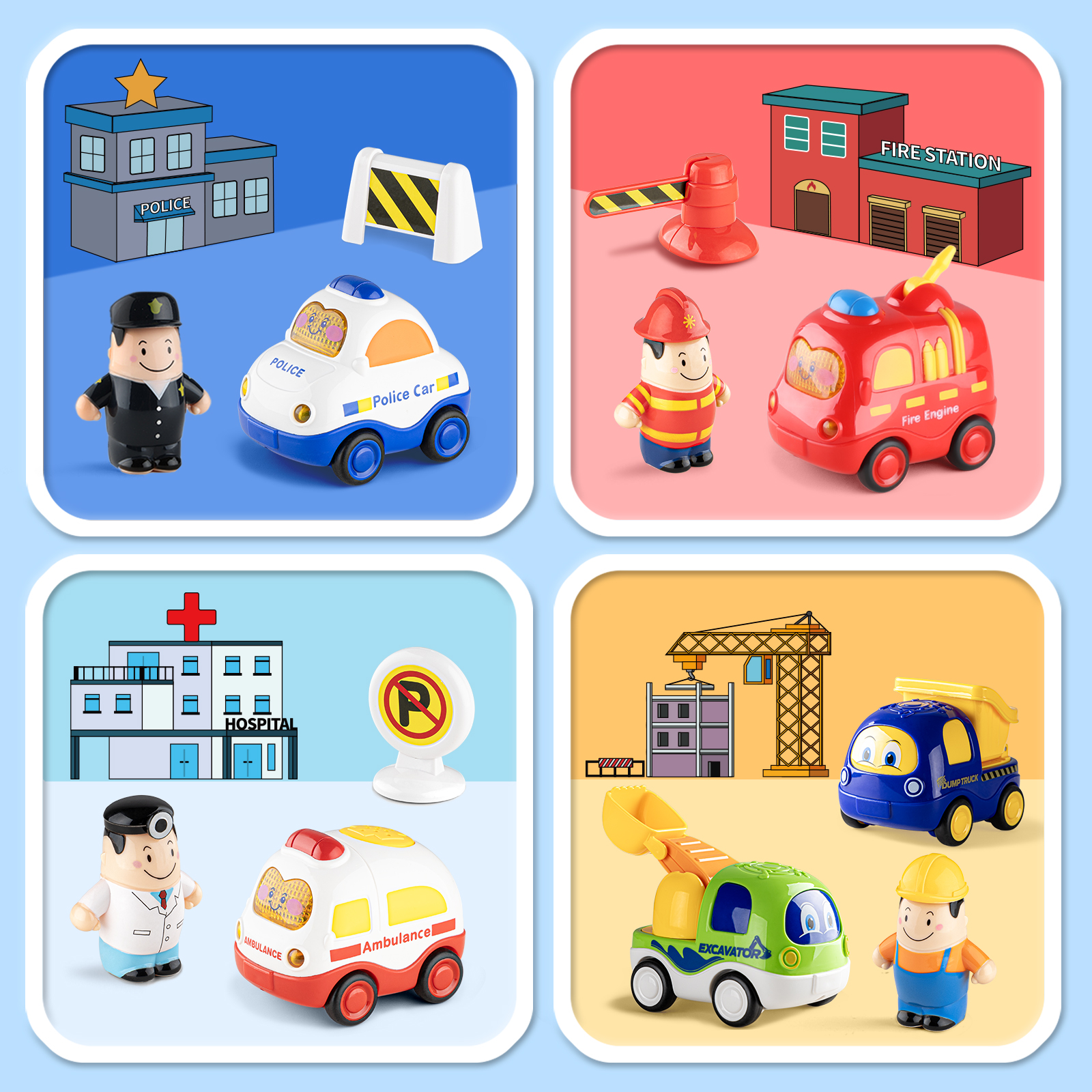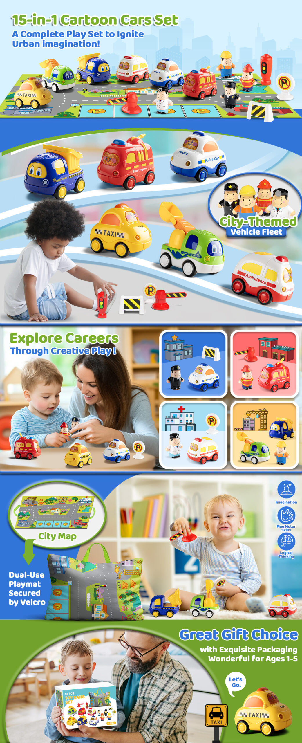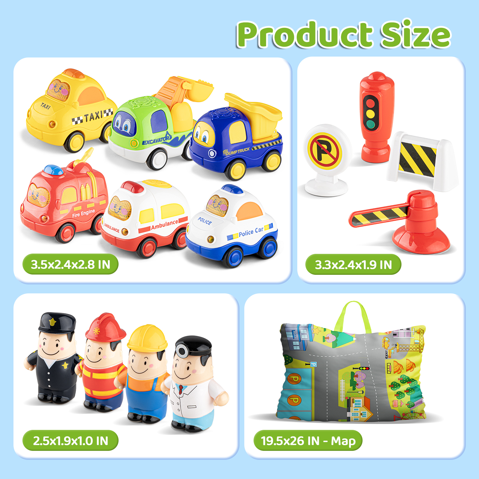 - Interactive and Engaging Play:Includes 6 easy-to-use vehicles, 4 figures, and 4 traffic signs. Perfect for small hands to encourage active play and develop motor skills