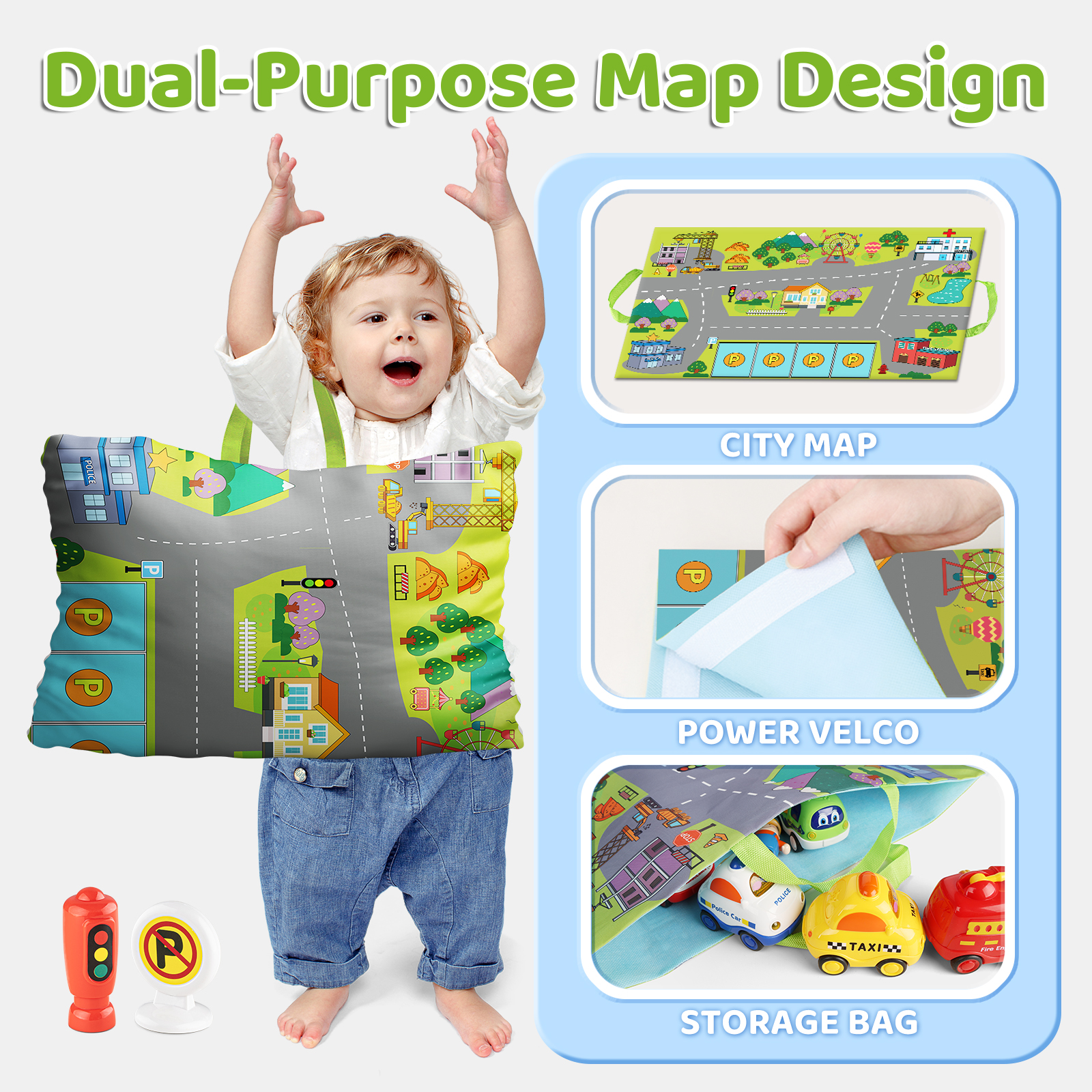 - Portable & Convenient: City map transforms into a bag to hold the car toys, perfect for carrying toy cars on the go