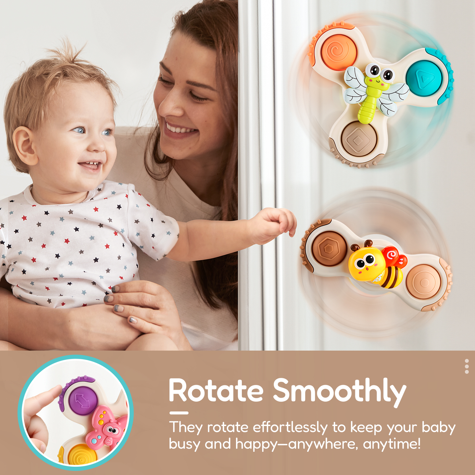 - HAND EYE COORDINATION:Helps little babies touch and use hand eye coordination to spin toy,also good for AUTISM children