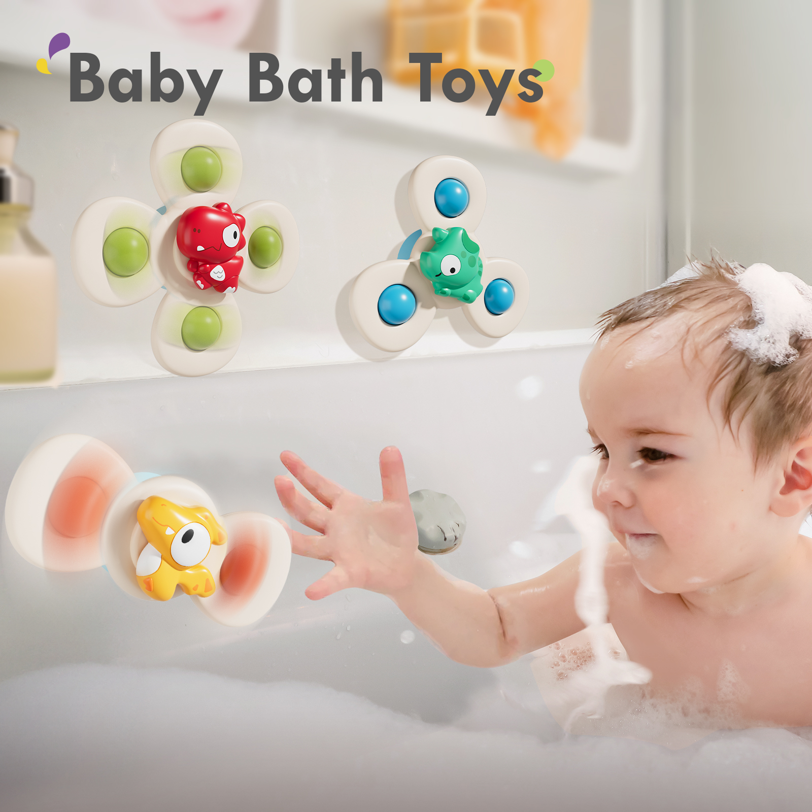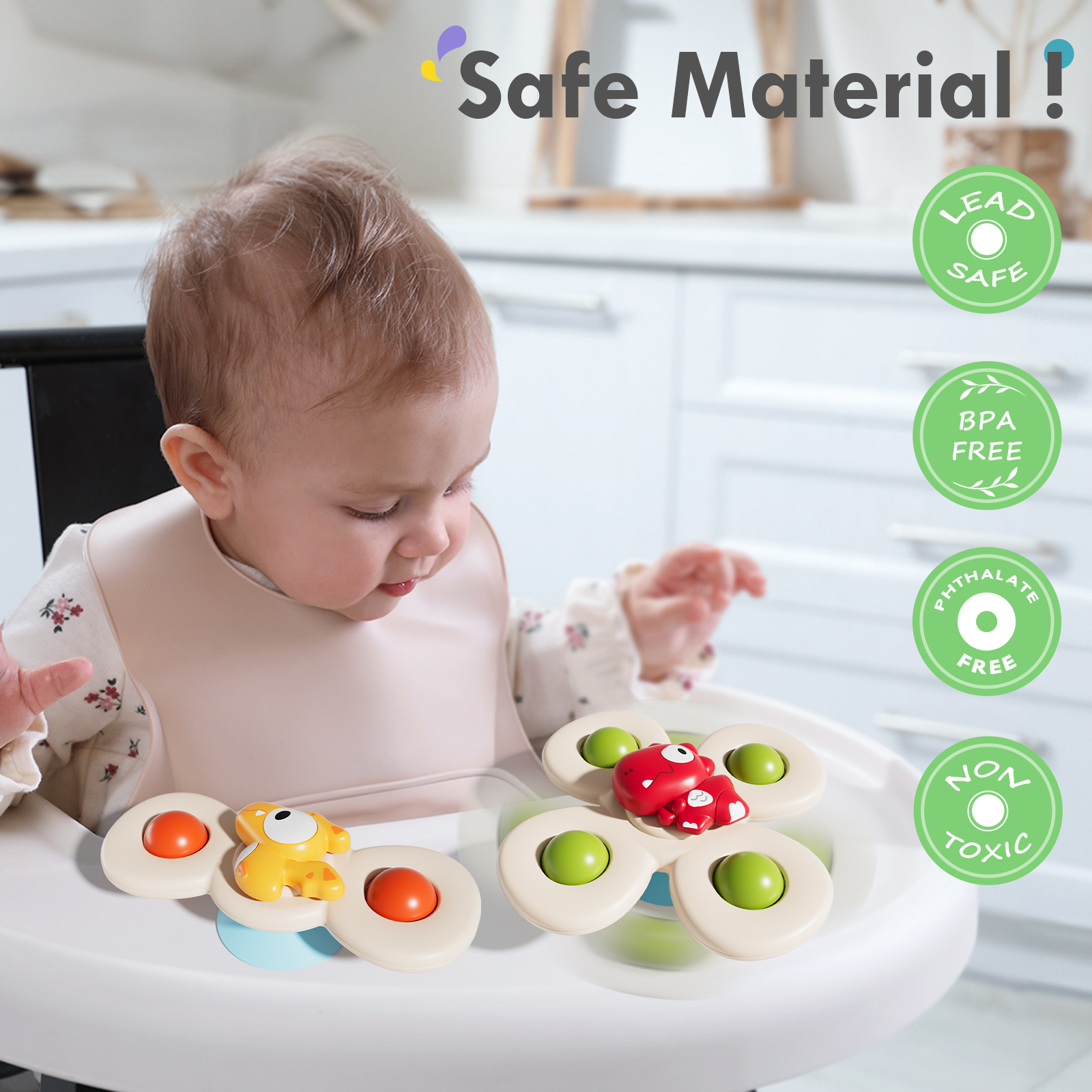ALASOU 3PCS Suction Cup Spinner Toys for 1 Year Old Boy Girl|Spinning Top 12 18 Months|1 2 Year Old Boy Birthday Gift|Baby Bath Toy for Kids Ages 1-3|Sensory Airplane Travel Toy for Infant Toddlers