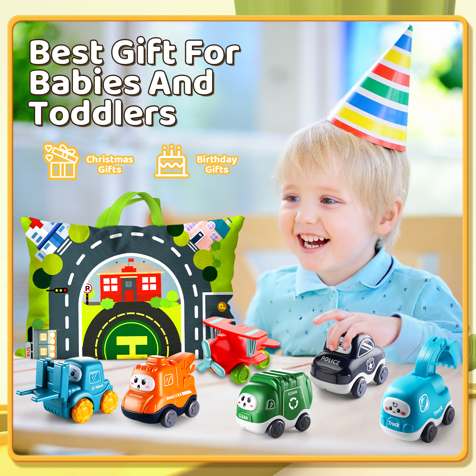 ALASOU Baby Cartoon Car Toys with Playmat/Storage Bag|1st Birthday Gifts for Toddler Age 1-2|Baby Toys for 1 2 3 Year Old Boy|1 2 Year Old Boy Gift for Infant 12-18 Month