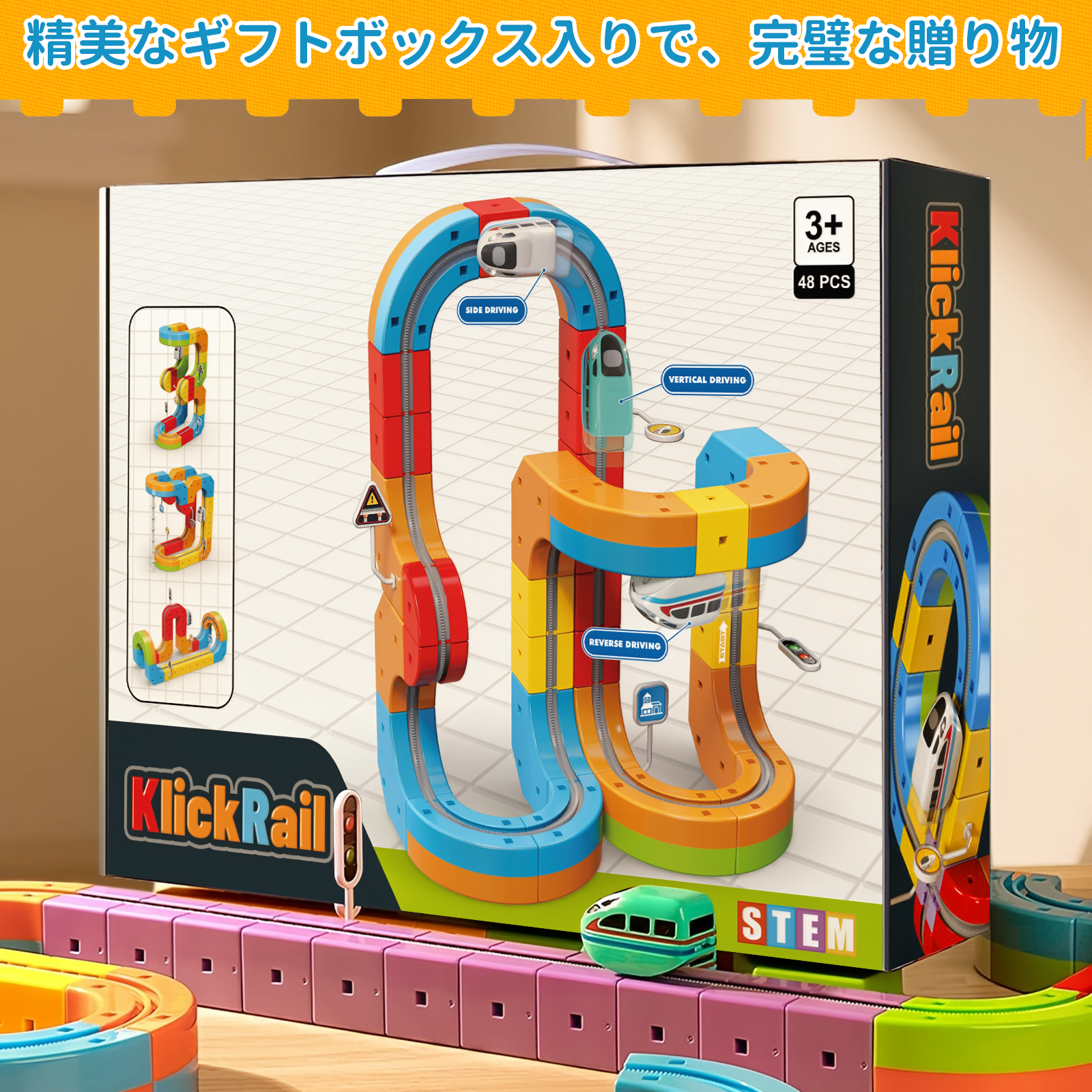 KlickRail 48 ピース 浮遊列車セット 積み木式組み立て可能なレール、反重力埋め込み型電動鉄道車両 3 4 5 6 7 8 歳子供用 STEM学習おもちゃ 知育玩具 3歳 おもちゃ 男の子